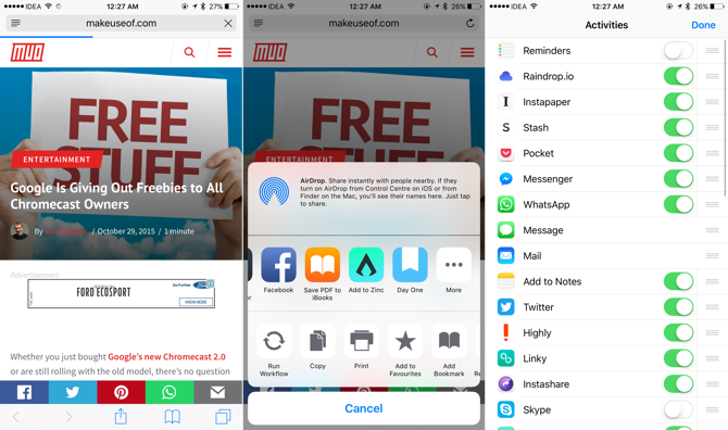 Màn hình tiếp theo hiển thị mọi tiện ích thao tác hoặc chia sẻ có sẵn, tùy thuộc vào hàng bạn đã chọn. Để bật tiện ích mở rộng, hãy chuyển nút gạt bên cạnh tiện ích đó