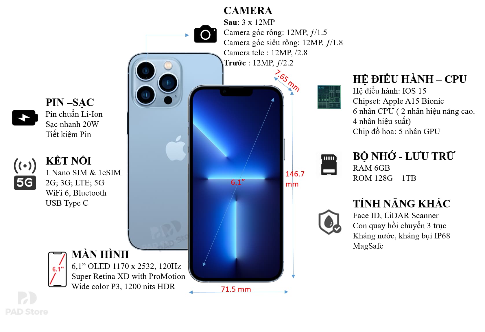 >> Tham khảo thêm thông số iPhone 13 tại PAD Store: