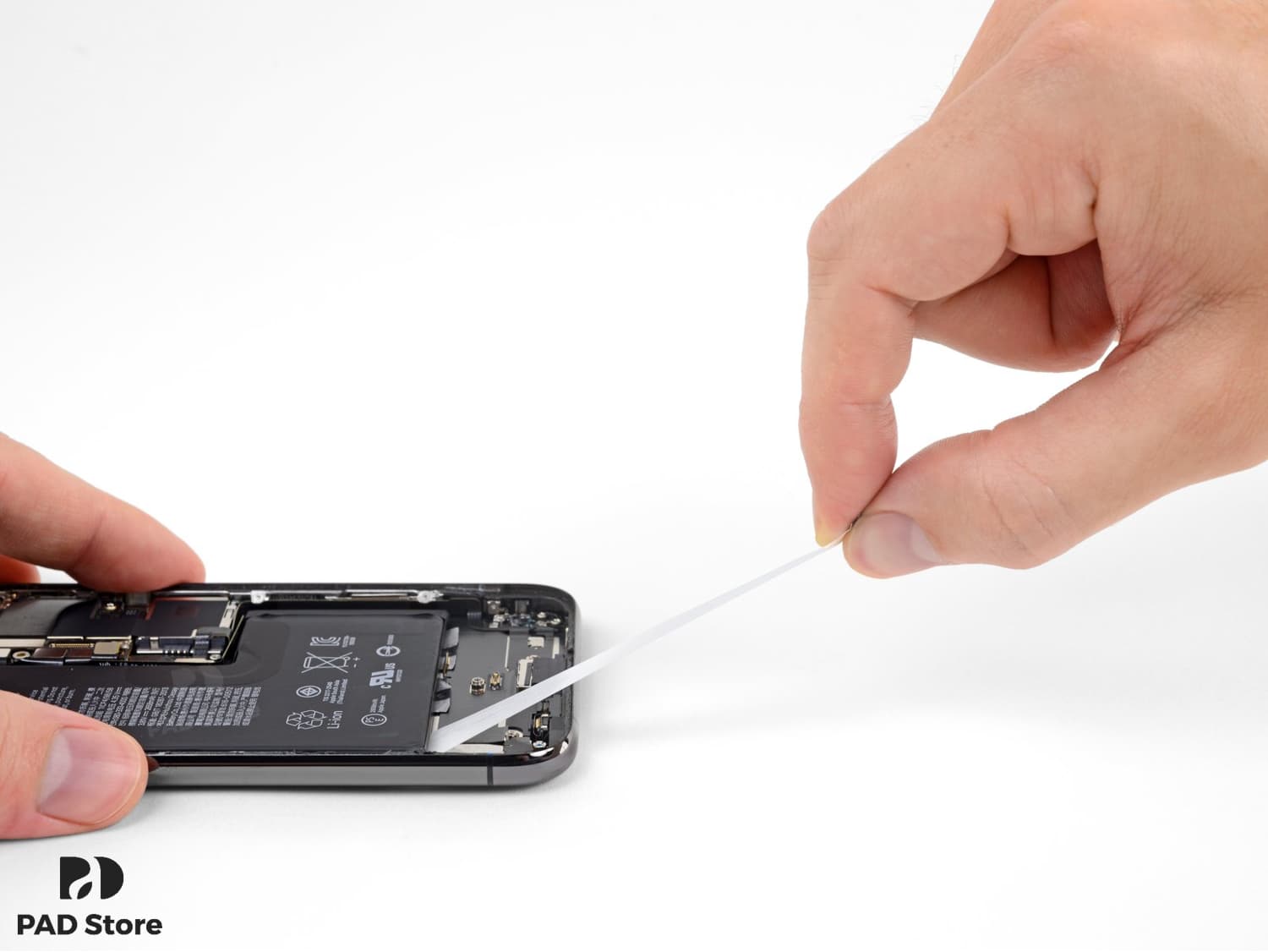 Tháo keo giữ pin iPhone Xs để pin được lấy ra dễ dàng