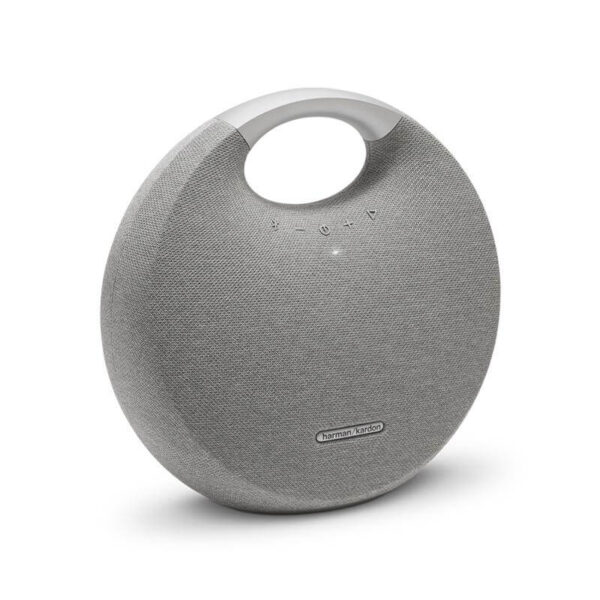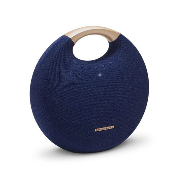 Harman Kardon Onyx Studio 5 có thiết kế hình tròn dẹp độc đáo với phần tay cầm tiện lợi. Chiếc loa được hoàn thiện bởi khung nhôm chắc chắn, tránh va đập hiệu quả. Bên ngoài loa được bảo vệ bởi vải bọc cao cấp. Phần mặt đáy có thiết kế dẹt, thuận tiện cho việc đặt loa trên những mặt phẳng.