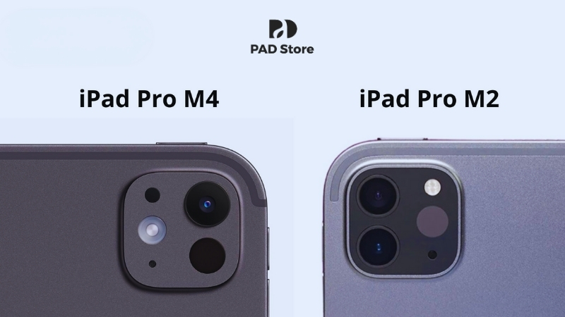 • iPad Pro M4: Thiết kế tương tự nhưng mỏng hơn, cụm camera trước được cải tiến với cảm biến TrueDepth hỗ trợ Face ID và chế độ chân dung.